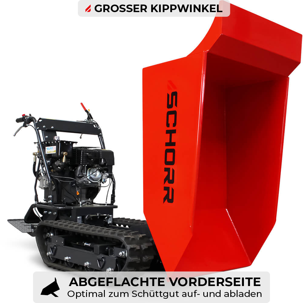 SCHORR Minidumper RR500DHKA2 PRO 500kg Mulde mit Kipphydraulik und Mitfahrplattform 9,2 PS Motor Raupendumper